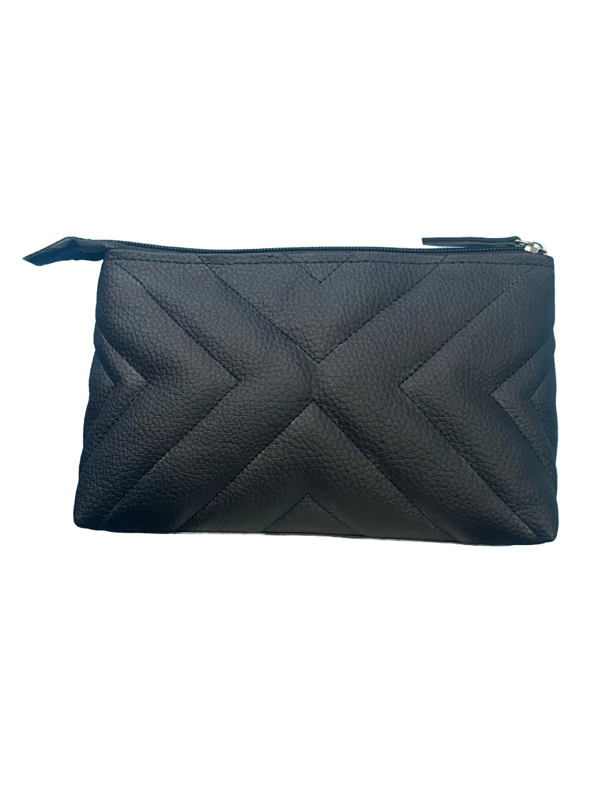 Necessarie grande, modelo triangular, com decoração em metalassê que garante além de beleza un produto estruturado, o material é impermeável, contém forro e fechamento em zíper.