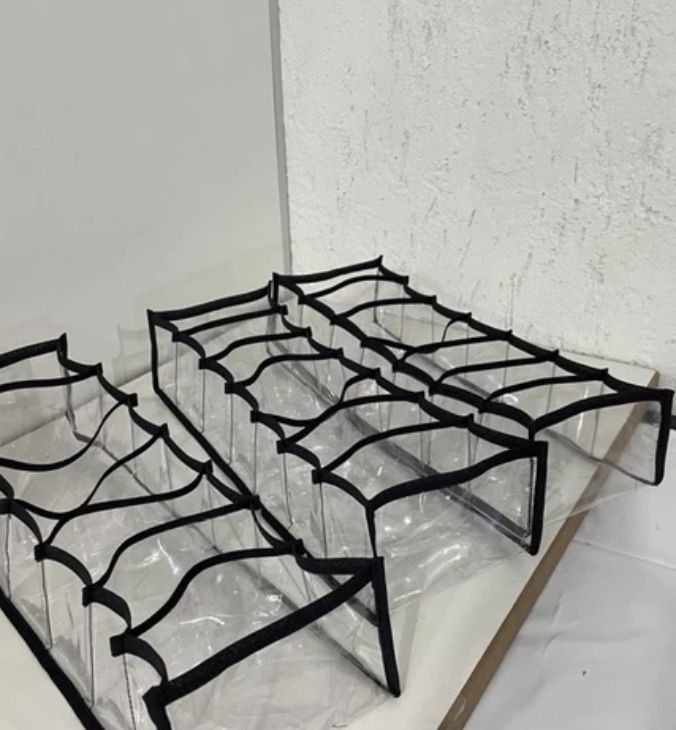 kit contendo 3 organizadores de gavetas, ideal para organizar peças pequenas nos armários, como meias, roupas intímas e lenços.